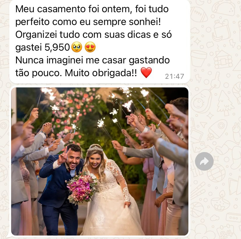 Mas garanto que você terá acesso aos exatos segredos que eu e milhares de noivinhas seguiram para alcançar essa meta de economia.